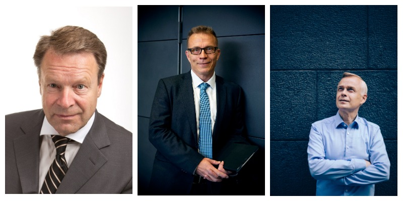 Kokoomuksen puolustusvaliokunnan puheenjohtaja Ilkka Kanerva ja jäsenet Jukka Kopra ja Timo Heinonen