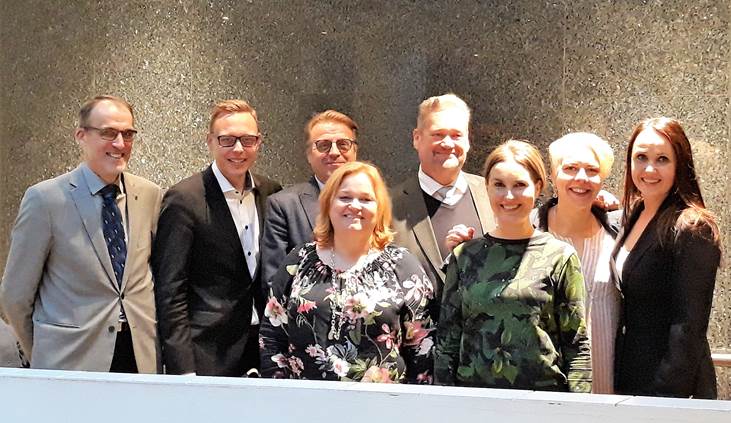 Kuvassa (9.5.2019) vasemmalta lukien: Takarivi maakuntajohtaja Asko Aro-Heinilä, Matias Marttinen, Jari Koskela, Jari Myllykoski, Heidi Viljanen, Kristiina Salonen