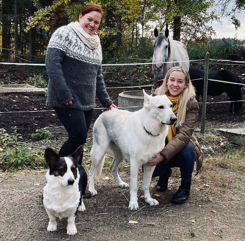 Kuvassa eläinavusteisen työryhmän sihteeri ja Luontohyvinvointikeskus Tyynelän yrittäjä Maria Siutla (vas.) sekä ryhmän perustaja ja tuore puheenjohtaja, vihreiden kansanedustaja Sofia Virta.