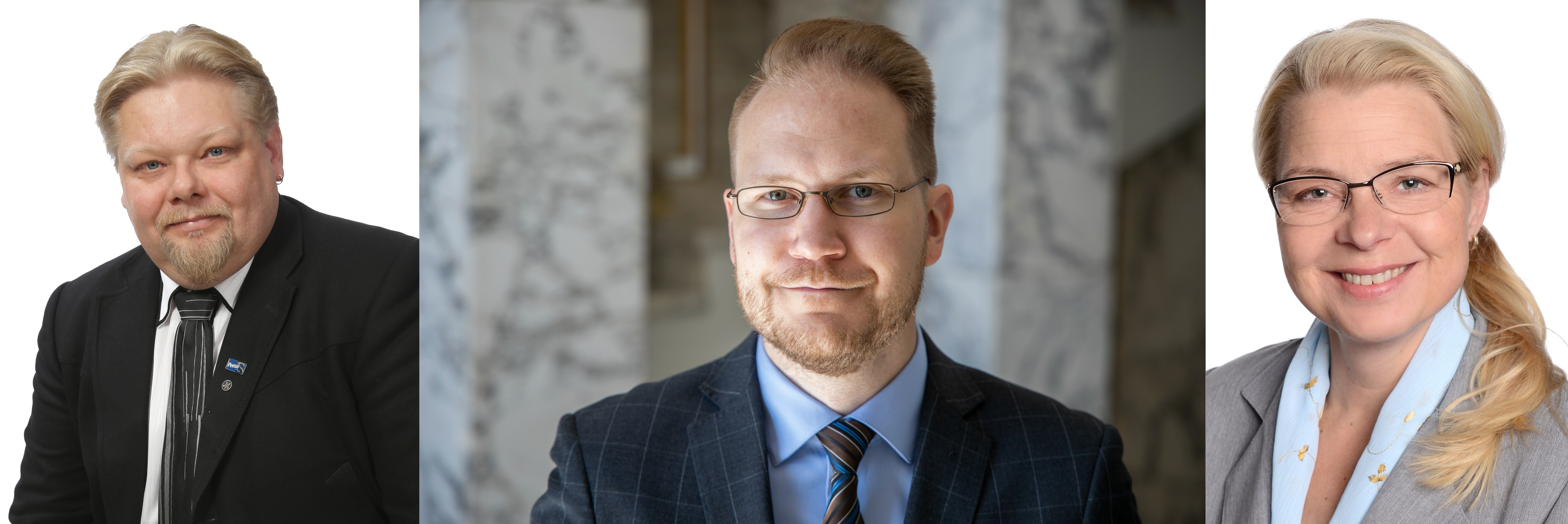 Perussuomalaiset Yleisradion hallintoneuvoston jäsenet ja kansanedustajat Jari Ronkainen, Olli Immonen ja Leena Meri